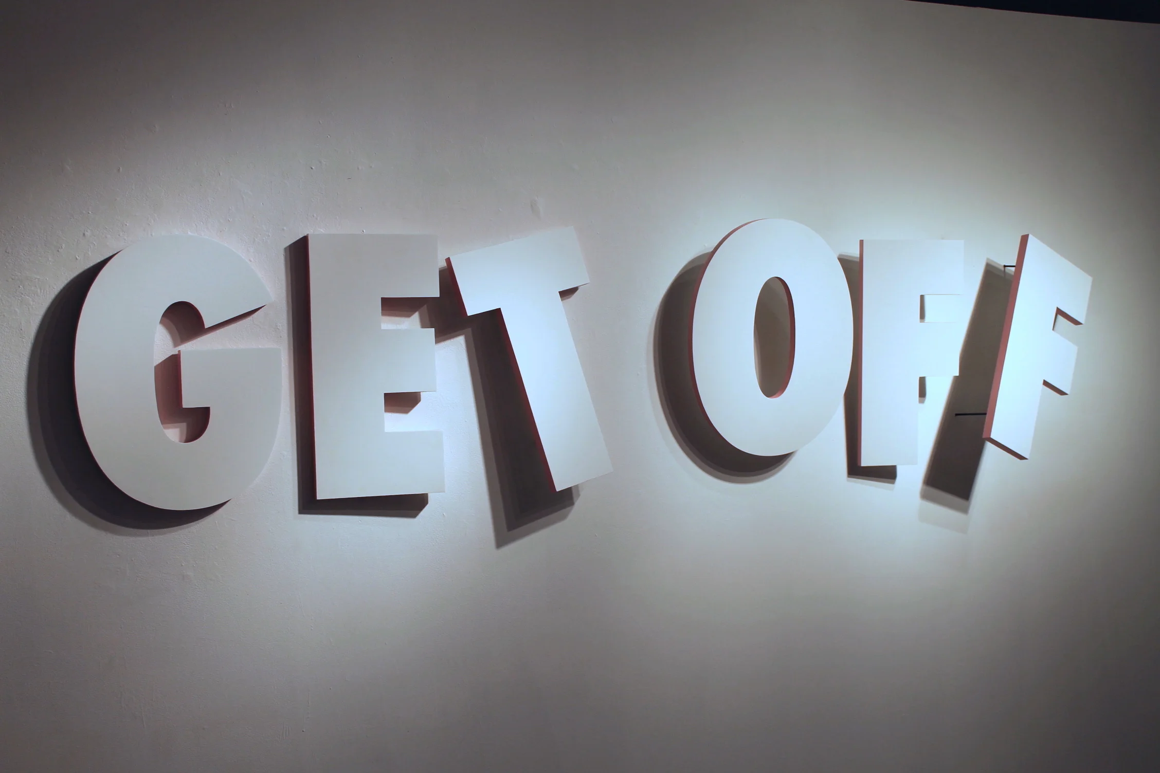Well it’s an interesting thing, to bring it back to the ownership, not too many people are going to want an 8ft word hanging on their wall. Apart from that, not too many people are going to have the lighting to do it, I consider the lighting a part of the work, I consider the space a part of the work. There was a moment where I had a dust mop, and I was sweeping, actually twice before the reception, and I was telling myself, kind of laughing, you know, if craft is care, I’m crafting the space, because I don’t want dirt, I don’t want these things to be seen.
